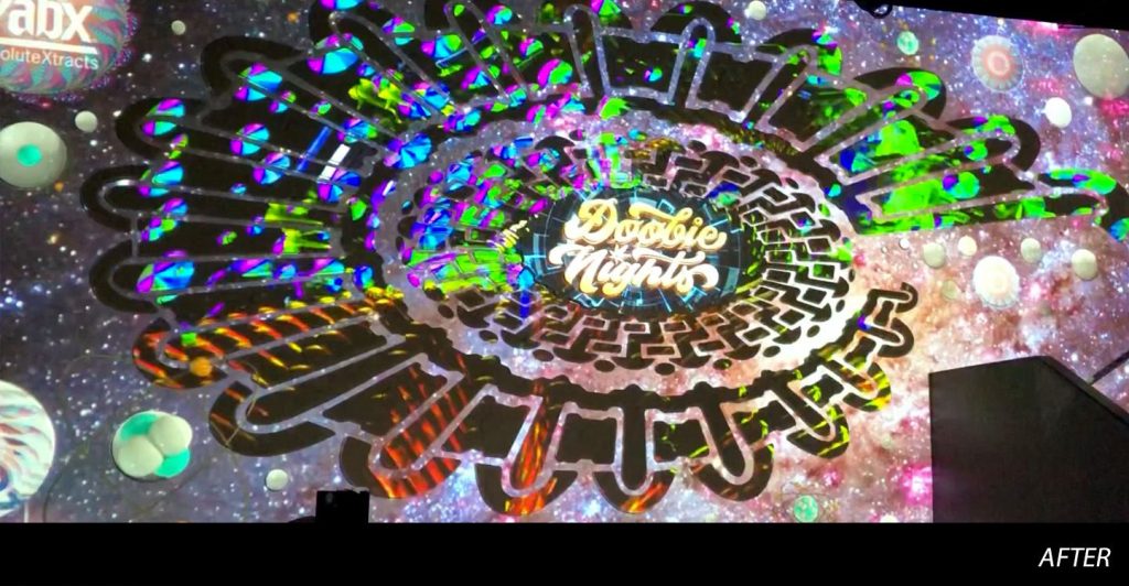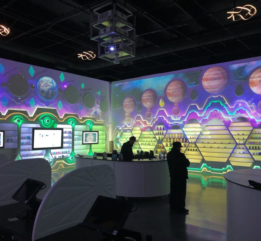 Doobie Nights is a next-generation immersive retail environment built to merge psychedelic art, projection mapping, and experiential design into a fully cinematic shopping journey. As Video Director and Projection Systems Lead, I oversaw the technical and creative foundation of the installation—providing and configuring the 4K laser projection systems, supervising the full installation, aligning multi-projector environments, and producing custom content sequences for the space.