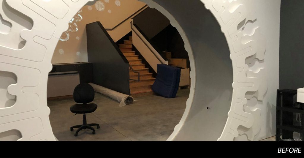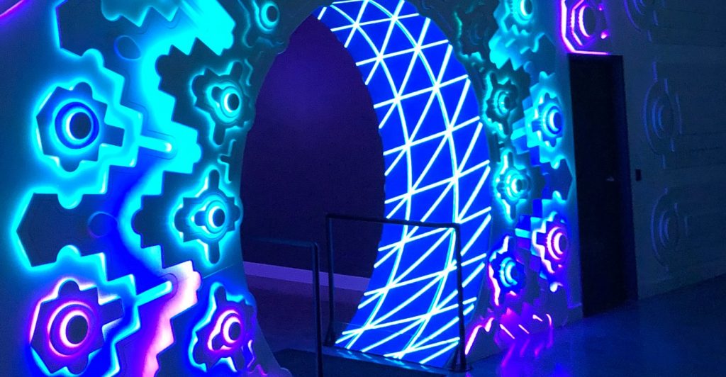 Guests enter through a curved LED “portal” and step into a 360° visual world where walls transform into galaxies, pyramids, waterfalls, forests, and surreal landscapes. Working closely with Carey Thompson (Galactivation) and Brian Pinkham (Photonic Bliss), I helped fuse projection-mapped animation with LED sculpture, reactive architectural lighting, and hundreds of physical art pieces for a constantly evolving, multi-sensory environment.
