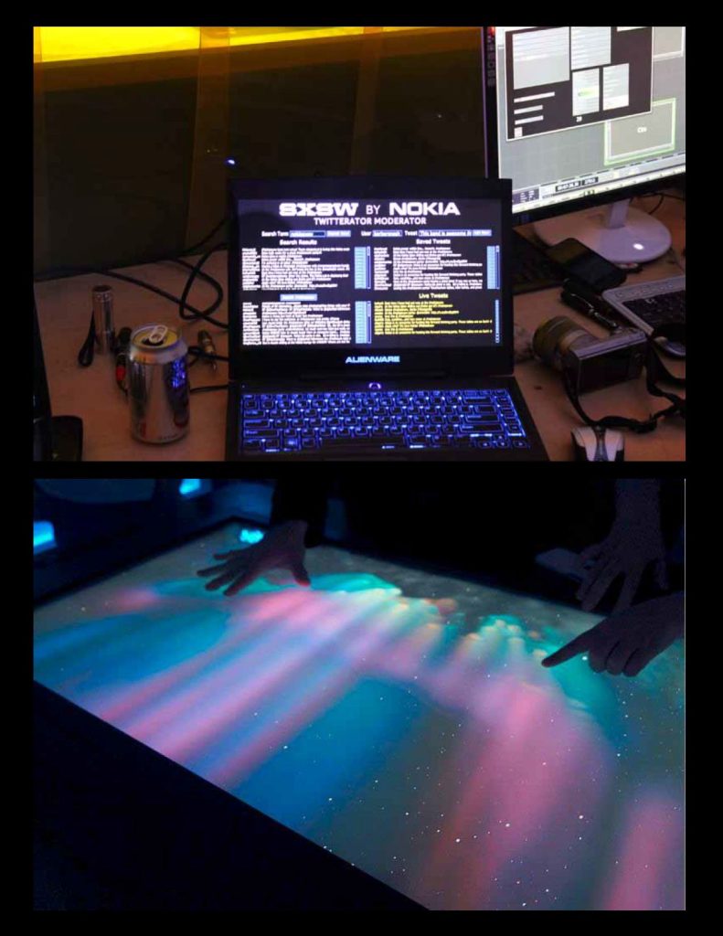 I oversaw the setup of the dome structure, installation of the projection systems, and alignment of the immersive media that wrapped the interior. Inside the space, Vortex developed original programming including a multi-touch table that triggered Northern Lights effects mapped across the dome, product-driven animations, and synchronized visual sequences. We also integrated VIM’s real-time server technology, enabling attendees to Tweet live to the dome, which quickly became one of the biggest attractions at the festival.