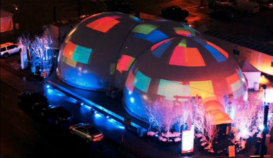 Format: 4,000 sq. ft. Translucent Inflatable Tri-Dome | Immersive Projections + Live Events
